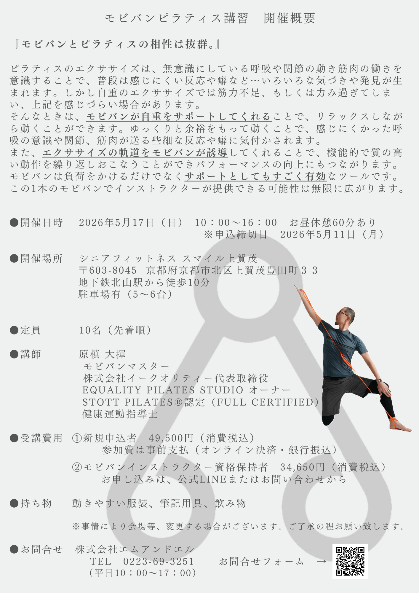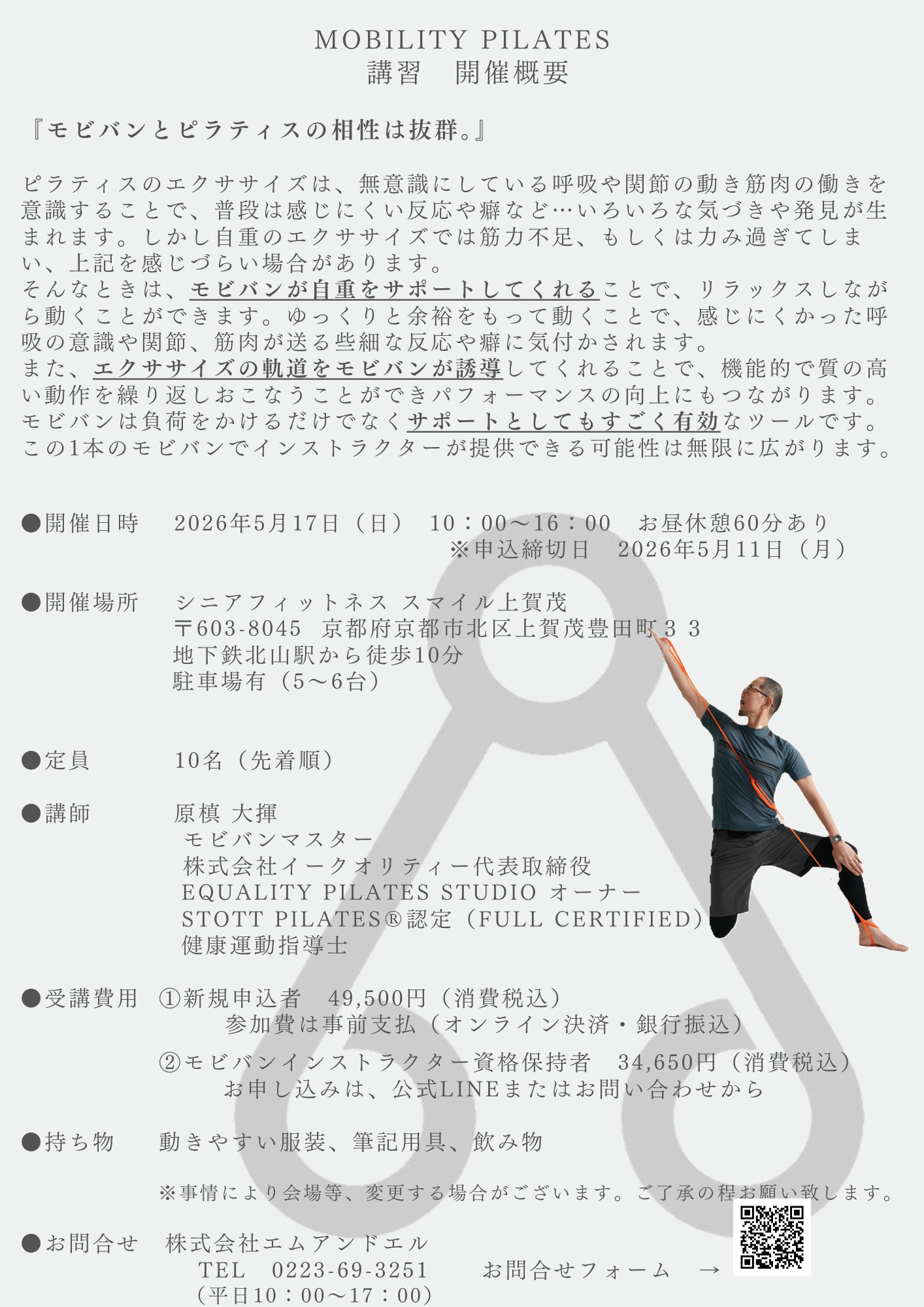 <京都市 会場>モビバンピラティス インストラクター養成講習会【2026年5月17日(日)】